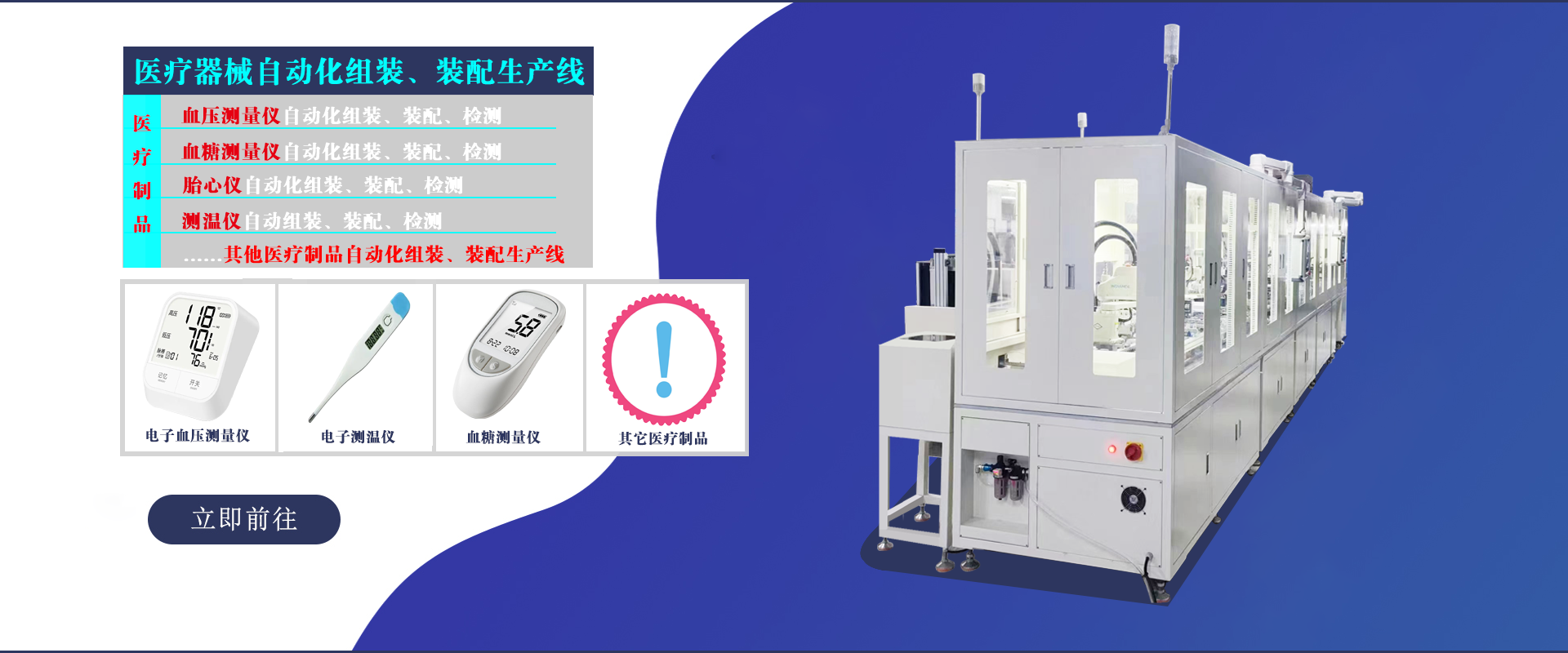 醫療器械自動化組裝線是針對醫用血壓計、電池倉、等機械設備的精密元件的組裝和裝配,非標專業定制,可根據客戶提供的產品及工廠布局量身定制,實現自動化智能裝配,打造無人化車間。可快速連續穩定24小時運行,專人維護,操作簡單.